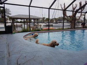 Ansonsten teilen wir uns unsere Unterkunft mit zwei Labradoodle (=Mix auf Labrador und Pudel), Emma und Charly. Die beiden sind super knuffig und der Knaller. Aber seht selbst 😀